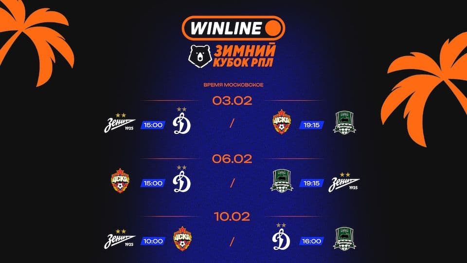 Турнир с участием четырех команд Мир РПЛ – «Краснодара», «Зенита», ЦСКА и «Динамо» – пройдет в круговом формате. Матчи состоятся 3, 6 и 10 февраля.